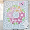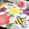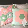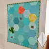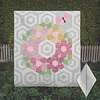 This quilt is constructed of four main blocks: the flowers, the butterflies, the leaf blocks, and the background hexagons.