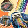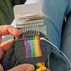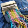 Just stretch the fabric over the tool, use the rubber bands to fix the fabric and loom in place, set up your warps and get weaving.